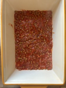 - Add tomatoes, sugar, salt, lentils and parmesan rind. Simmer while you prepare everything/as long as possible for ultimate flavour.