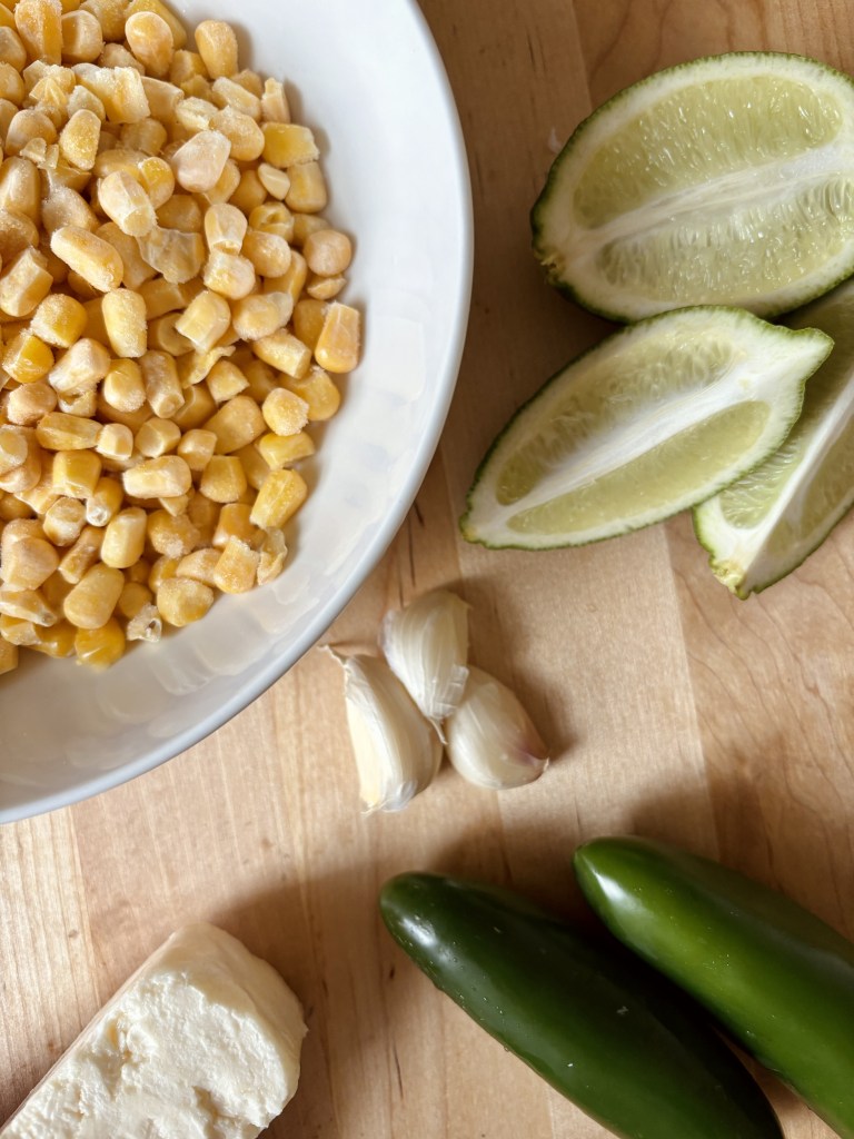 I char my limes and jalapenos in the pan before adding them to help get that smoky, charred flavour that elote has, so I would recommend going the extra mile and doing that if you have the time!