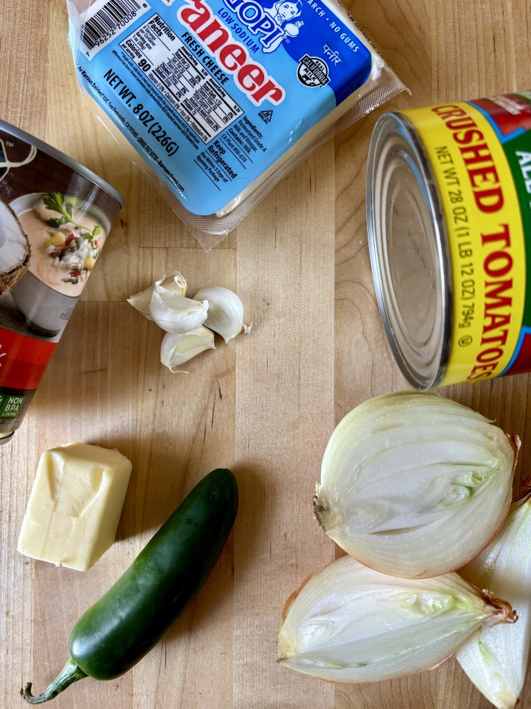 This curry gravy goes wonderfully with paneer or chickpeas or cauliflower or potatoes! Very versatile and a great way to use up any veggies you have left in the fridge!